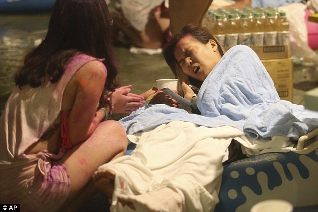 | Một cô gái đau đớn vì các vết bỏng gây ra trong vụ hỏa hoạn ở công viên nước Formosa. Ảnh: AP |