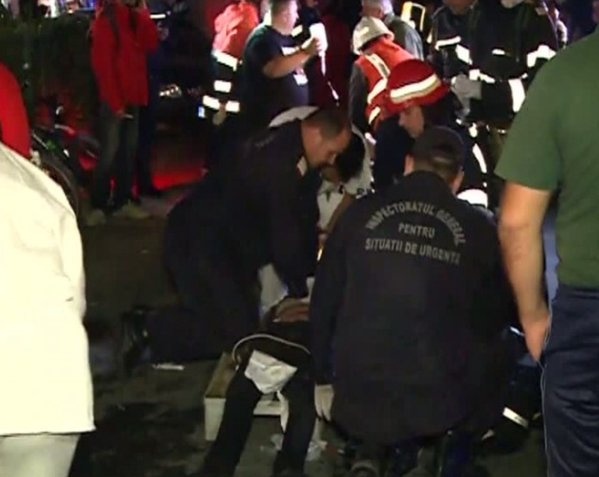 Một nhân chứng nới với Realitatea TV rằng một trong những quả pháo hoa phát nổ và đốt cháy giàn giáo khiến nó rơi xuống.