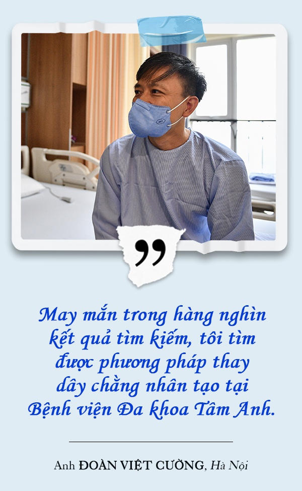 “Tôi cố gắng tìm kiếm thêm thông tin để hy vọng có cách giải quyết khác tốt hơn. May thay, trong hàng nghìn kết quả tìm kiếm, tôi tìm được phương pháp thay dây chằng nhân tạo tại Bệnh viện Đa khoa Tâm Anh”, anh Cường chia sẻ.