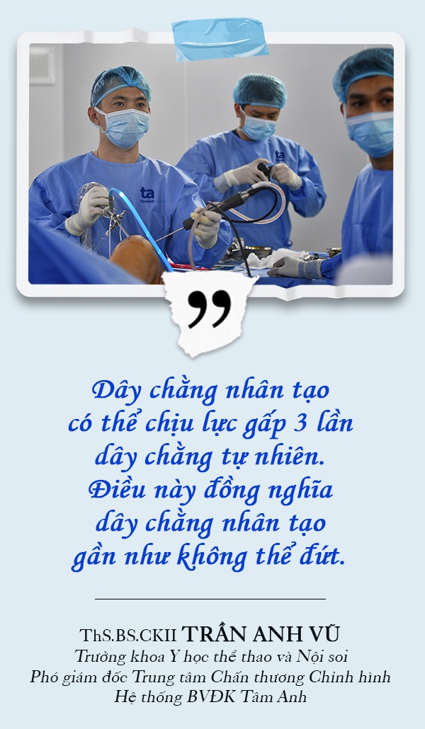 “Thực tế này khiến cả bác sĩ điều trị và người bệnh ít quan tâm đến dây chằng nhân tạo. Khi hệ thống Bệnh viện đa khoa Tâm Anh đưa dây chằng nhân tạo thế hệ mới về Việt Nam, ngay cả các đồng nghiệp còn nghi ngờ. Người bệnh cũng có lý do để đắn đo, liệu vật liệu có đủ tốt hay không, phù hợp với cơ thể không, hay khả năng đào thải chúng như thế nào”, bác sĩ Anh Vũ tâm sự.