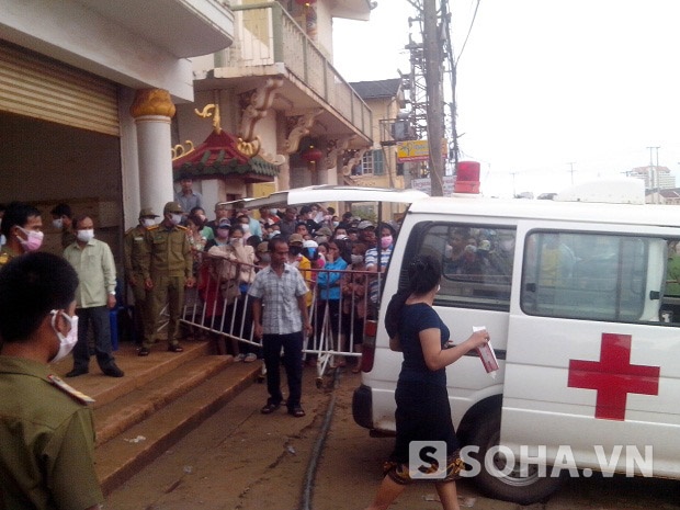 | Rất đông bà con Việt kiều tại Pakse tới chia buồn cùng gia đình nạn nhân. |