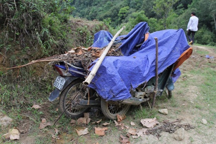 | Những chiếc xe đắp chiếu ở bản Pa Cheo vì đưa vào được nhưng ra... không được. |