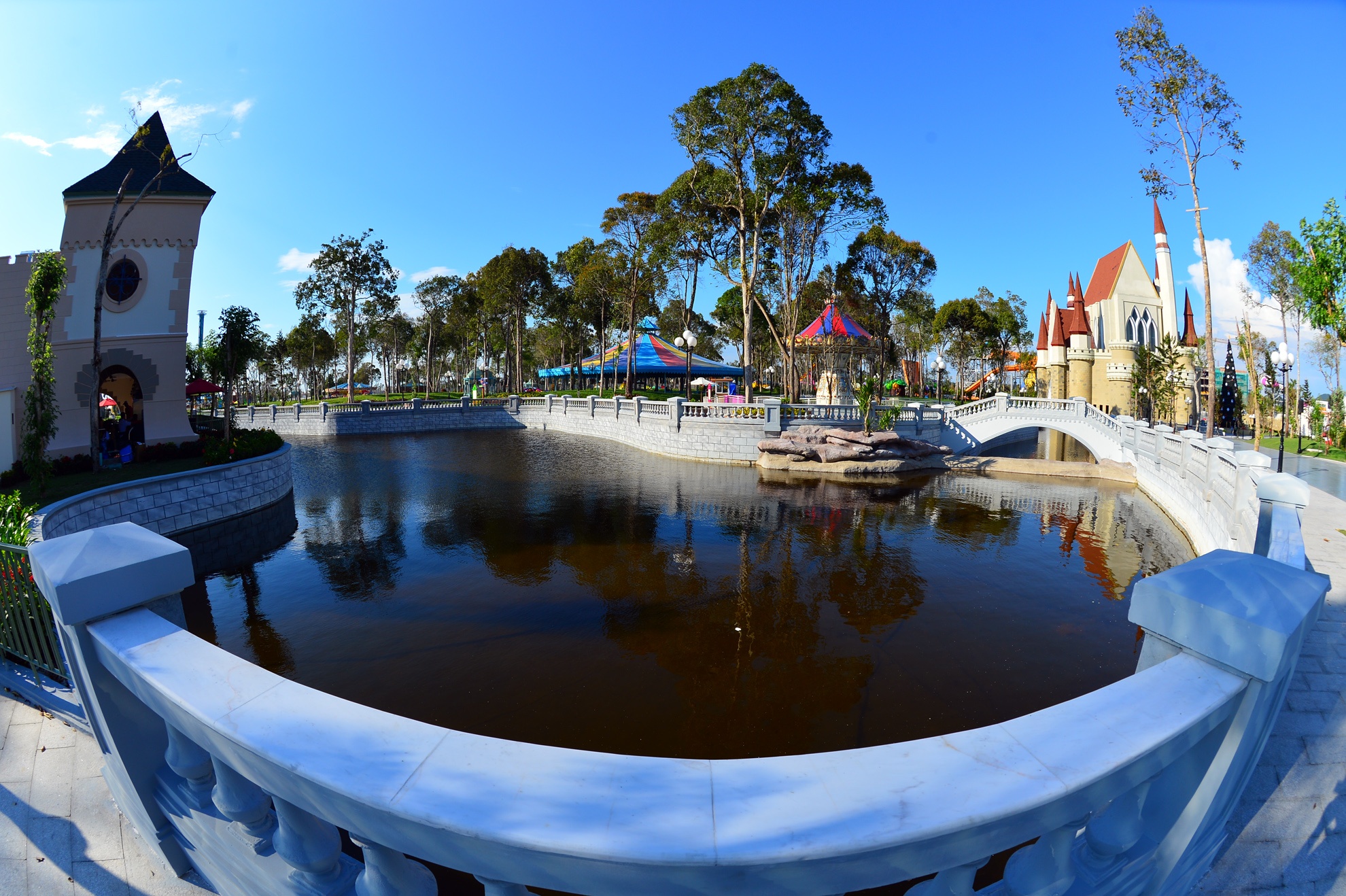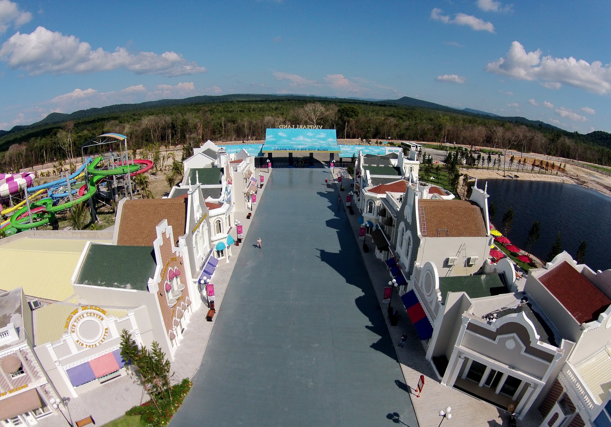 | Sân khấu nhạc nước nằm ven hồ, trung tâm của khu vui chơi giải trí, là nơi tổ chức đêm chung kết cuộc thi Hoa hậu Việt Nam 2014 tối nay, 6/12. |