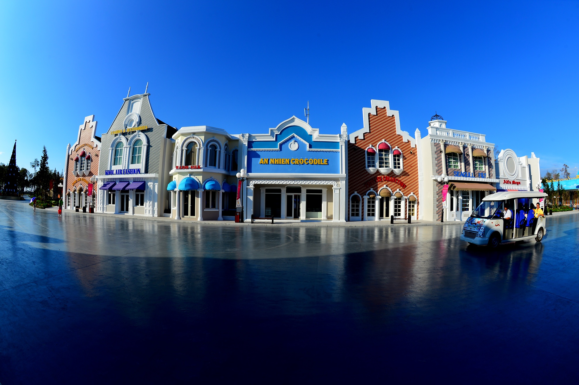 | Trung tâm của khuôn viên là hệ thống nhà hàng với hồ nước nhân tạo mô phỏng thành phố nổi Venice của Italy. |
