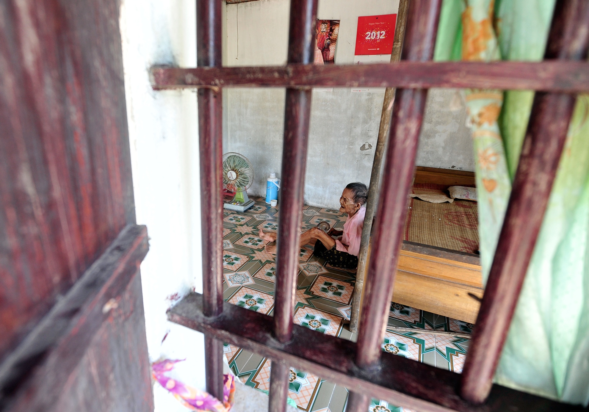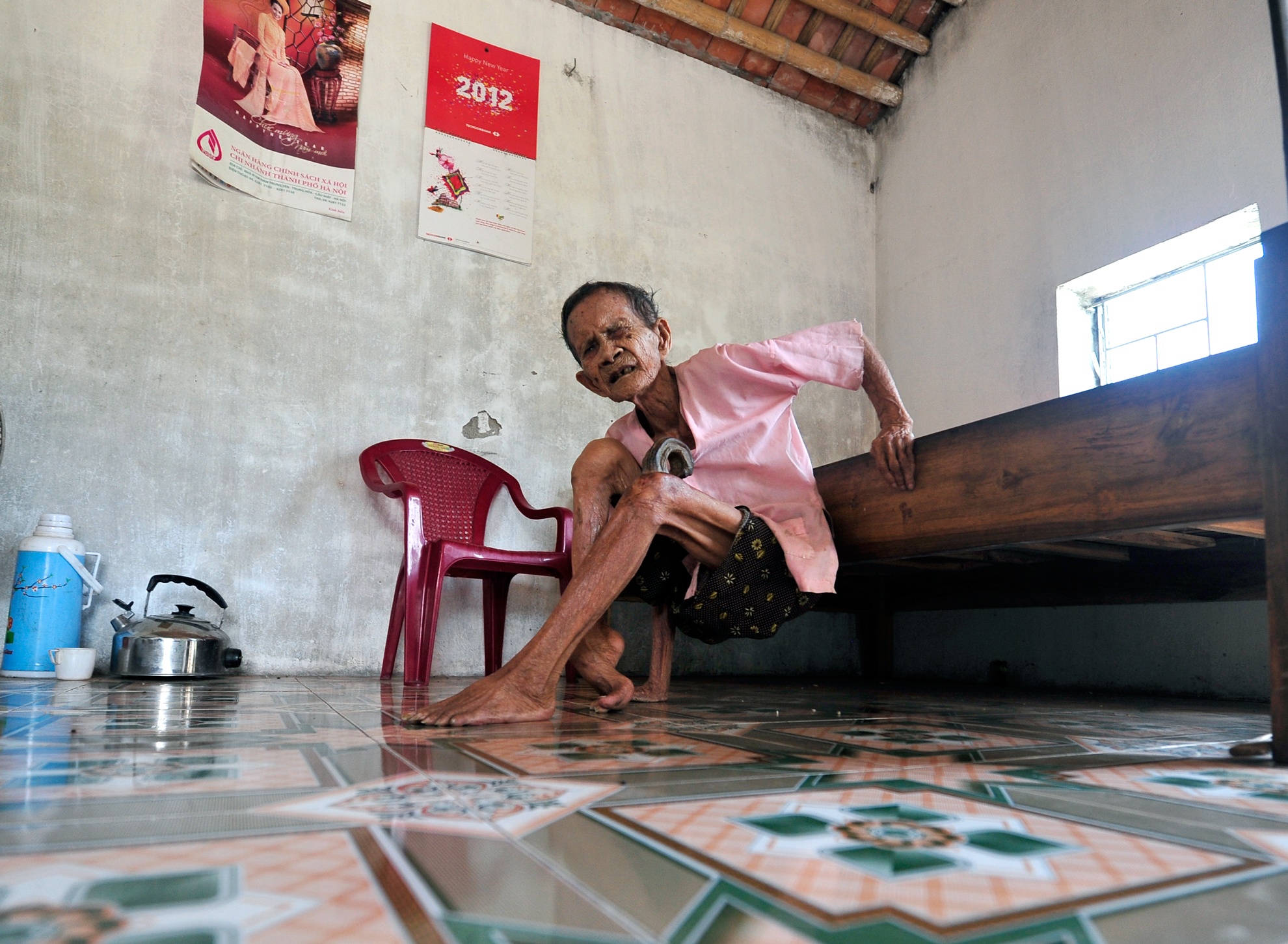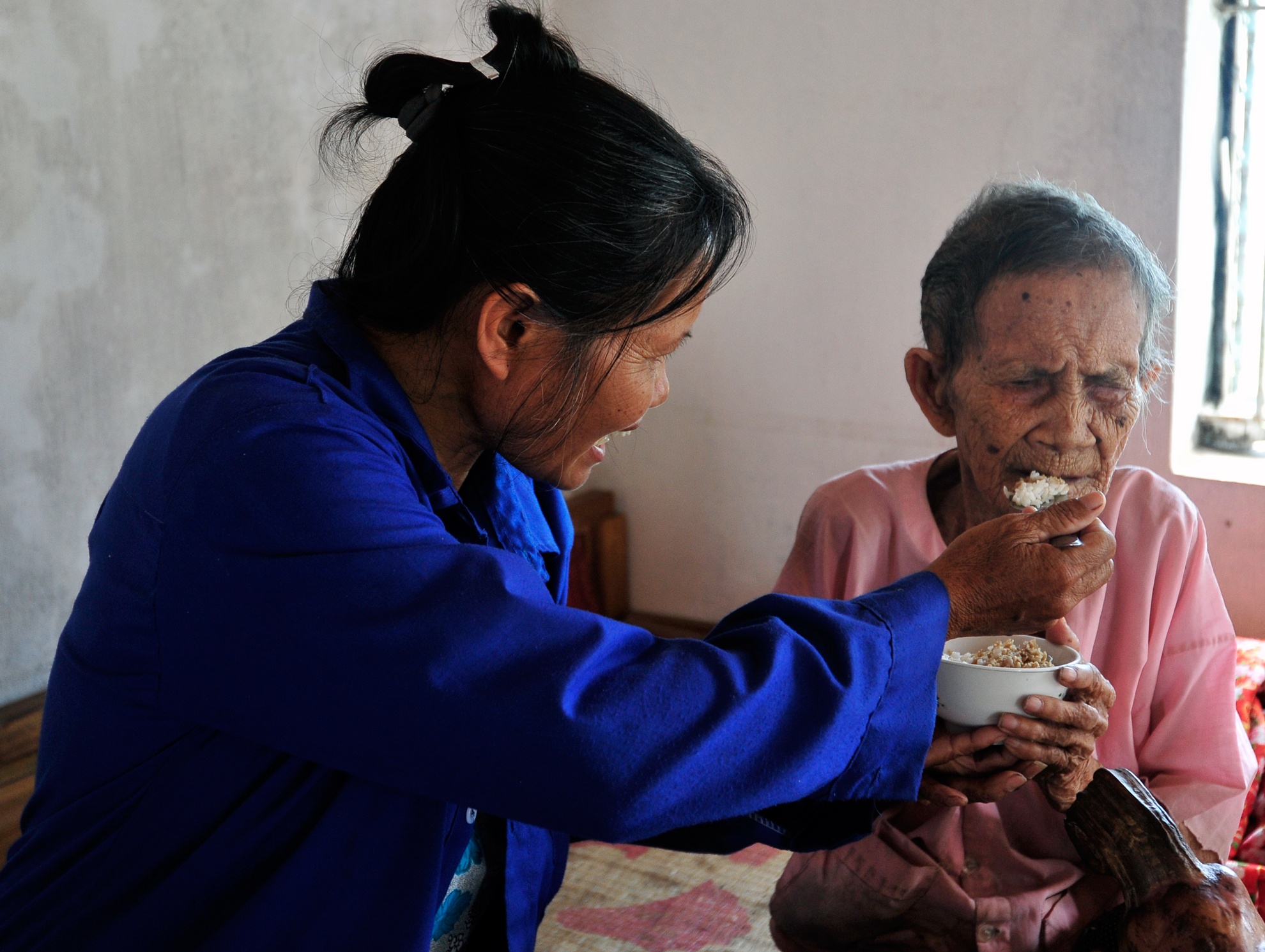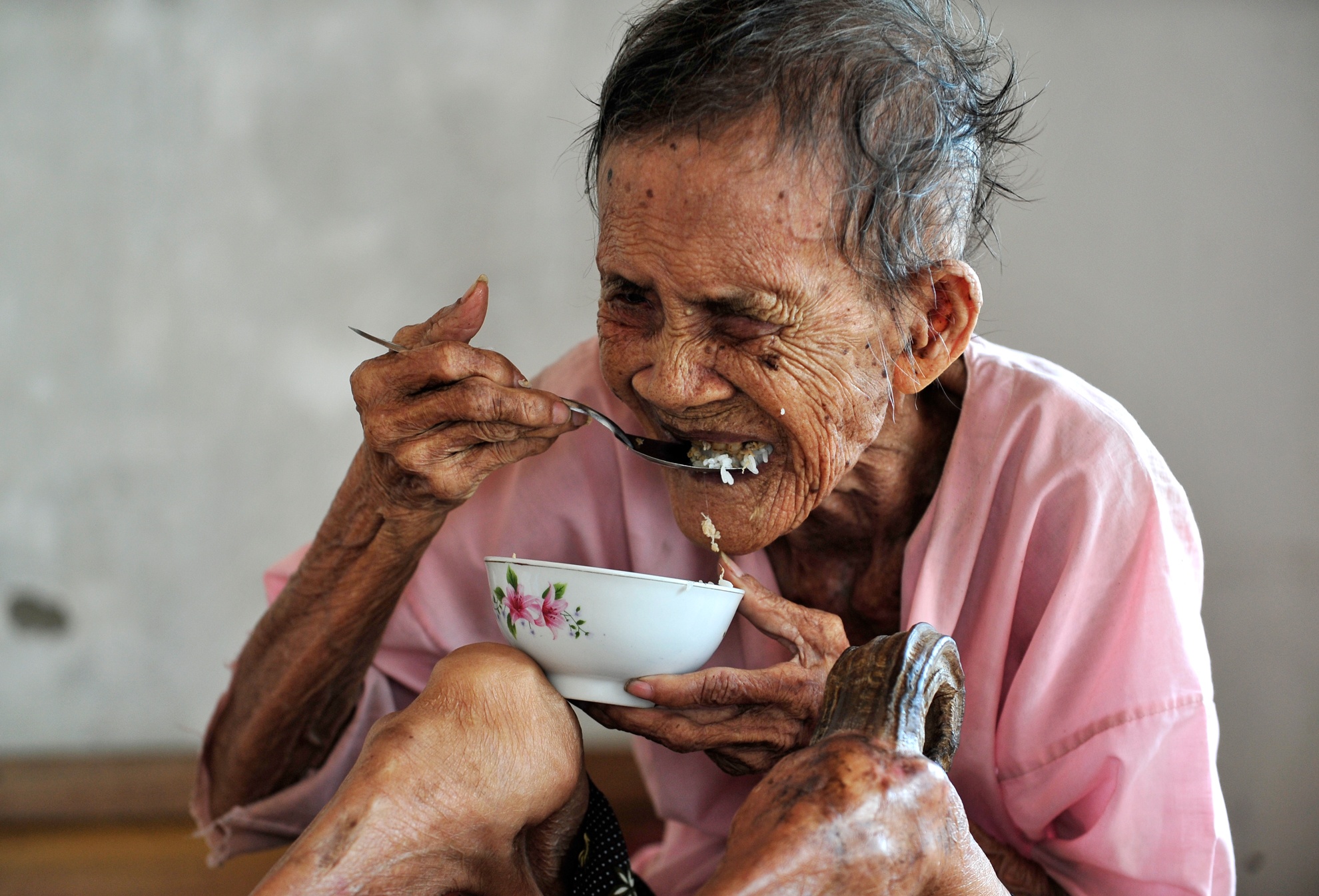 Ghì chiếc bát vào đầu gối chân phải chưa bị đau, đôi tay tuy run run nhưng cụ Ngôn vẫn có thể tự xúc ăn được. Lúc mỏi tay cụ đặt bát xuống và tự bốc cơm. Cụ vừa ăn vừa nói: "Tuy đã gần 100 tuổi nhưng tôi vẫn còn biết đấy, tự sinh hoạt cá nhân được và còn sạch sẽ lắm chỉ hơi đau ở chân thôi. Thằng con rể nó mắc bệnh thế nên bà con lối xóm thi thoảng phải giấu để cho đồng quà, tấm bánh hay chút hoa quả ăn cho khỏi đắng miệng".