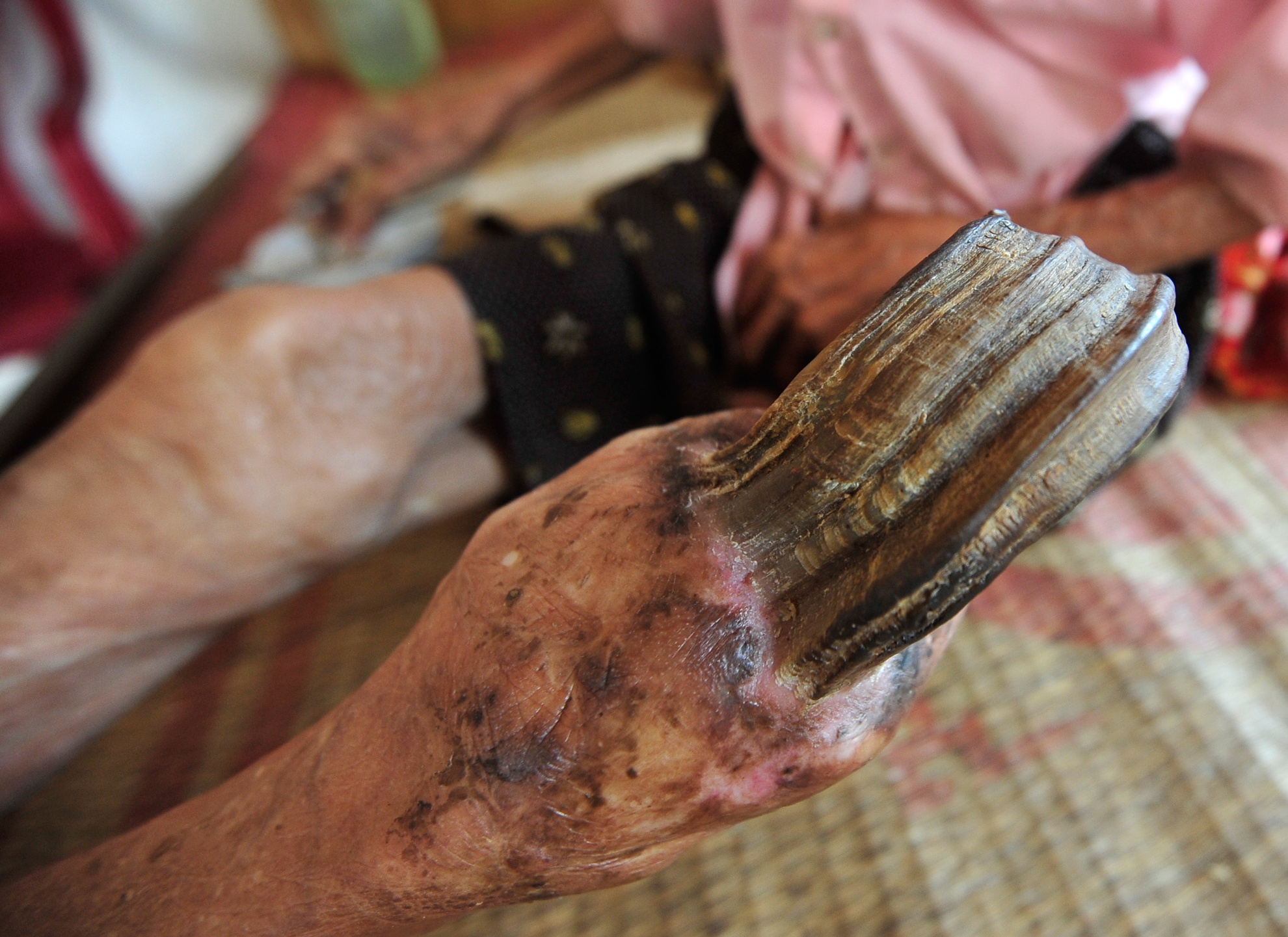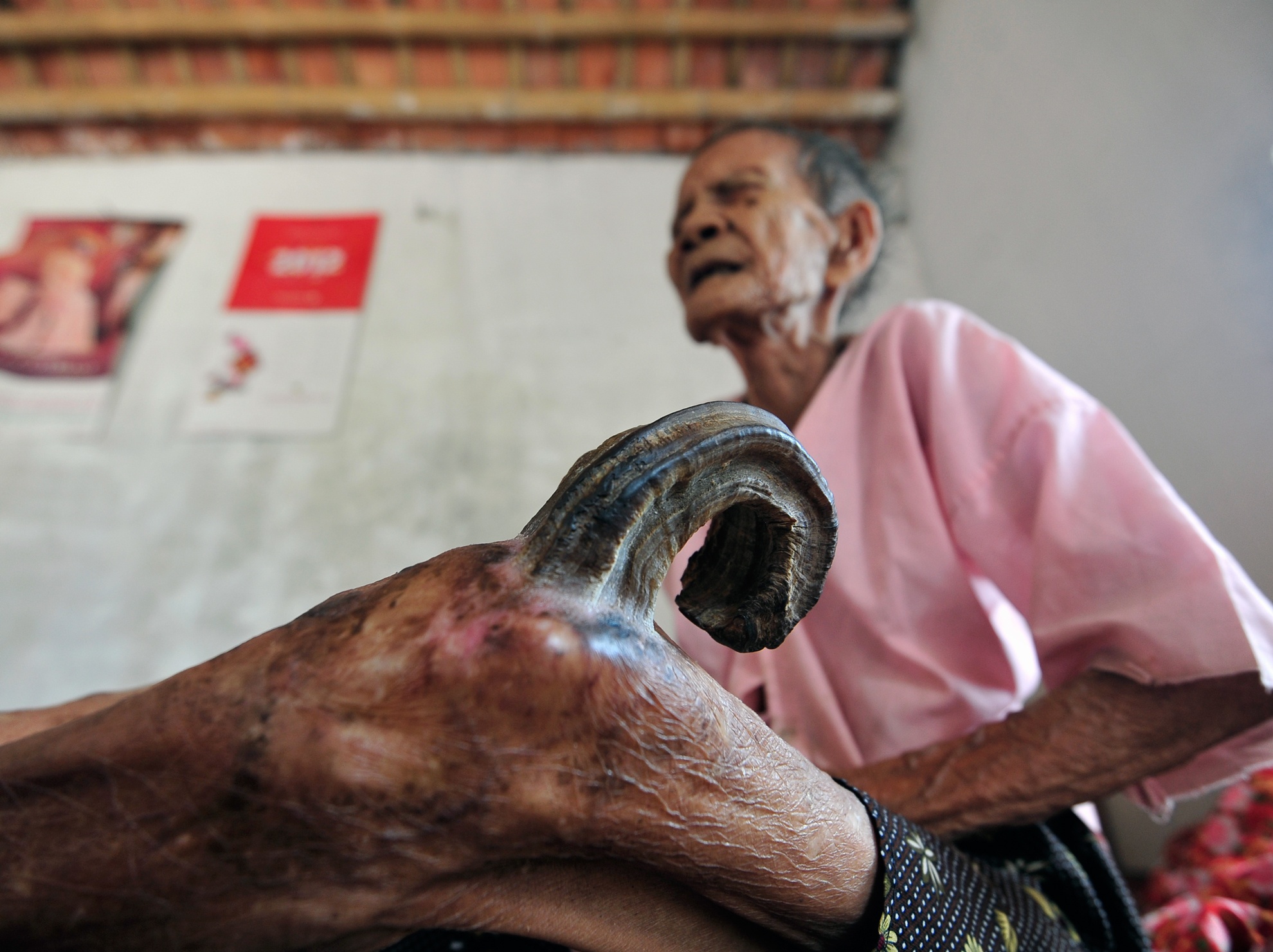 Cụ bà gần trăm tuổi ở Nam Định chỉ có thể lết quanh giường sau khi bị sừng mọc dài 20 cm ở đầu gối. Đã vậy cụ còn bị người con rể mắc bệnh tâm thần hay đánh đập, chửi bới.