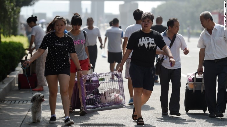 | Người dân mang theo đồ đạc và thú nuôi để sơ tán khỏi thành phố. Họ lo sợ khí độc và khói bụi từ vụ nổ sẽ ảnh hưởng tới sức khỏe. Ảnh: Getty |