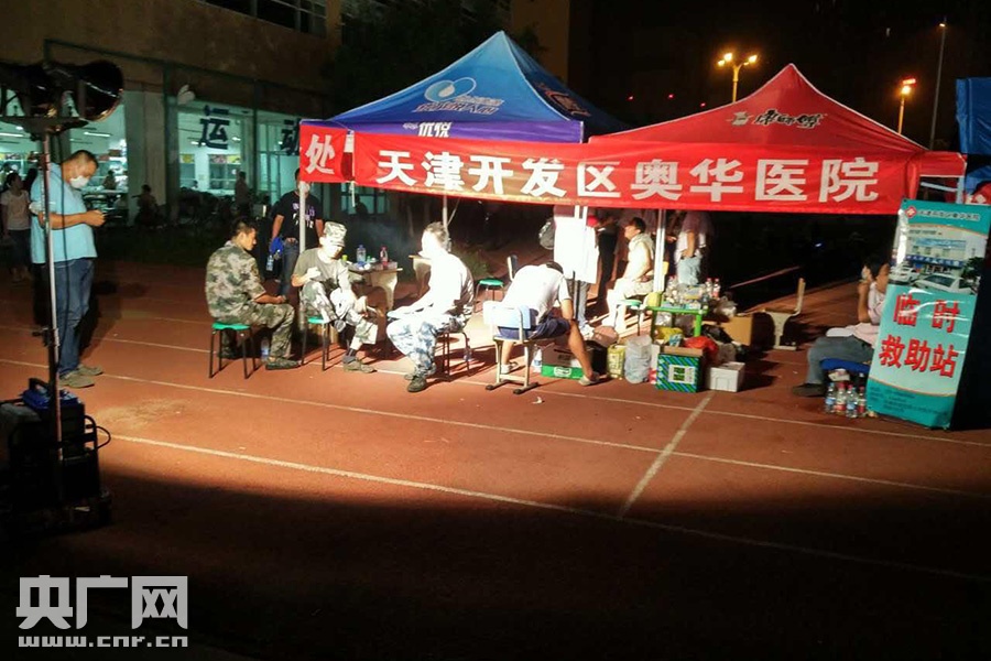 | Hàng trăm người phải trú tại một trường học của thành phố cảng sau thảm họa ở kho chứa hàng. Hai vụ nổ liên tiếp đêm 12/8 khiến ít nhất 50 người thiệt mạng, bao gồm 17 lính cứu hỏa. 18 người vẫn mất tích. Theo giới chức thành phố Thiên Tân, hơn 700 người đã nhập viện, 70 người trong số này ở tình trạng nguy kịch. |