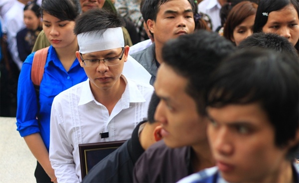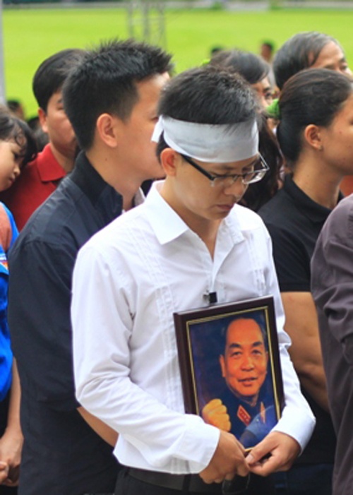 Trong đoàn người xếp hàng dài đến viếng Đại tướng Võ Nguyên Giáp tại hội trường Thống Nhất (TP.HCM) có một chàng trai cầm di ảnh Đại tướng, đeo khăn tang lặng lẽ chờ đến lượt mình viếng. Chàng trai tên Nguyễn Đình Phương, đang học cao học tại TP.HCM.