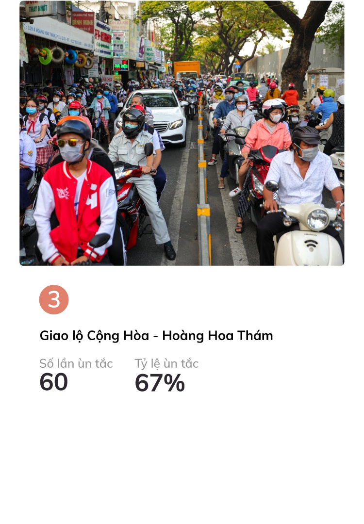 Dựa trên các tính toán từ dữ liệu hệ thống camera, Sở GTVT TP.HCM xếp 6 điểm này vào chỉ số "F" về mức độ ùn tắc hay không ổn định của dòng xe. "F" cũng là mức đáp ứng thấp nhất trong 6 chỉ số đo khả năng phục vụ ở các tuyến đường khu trung tâm và cửa ngõ thành phố (A-F).