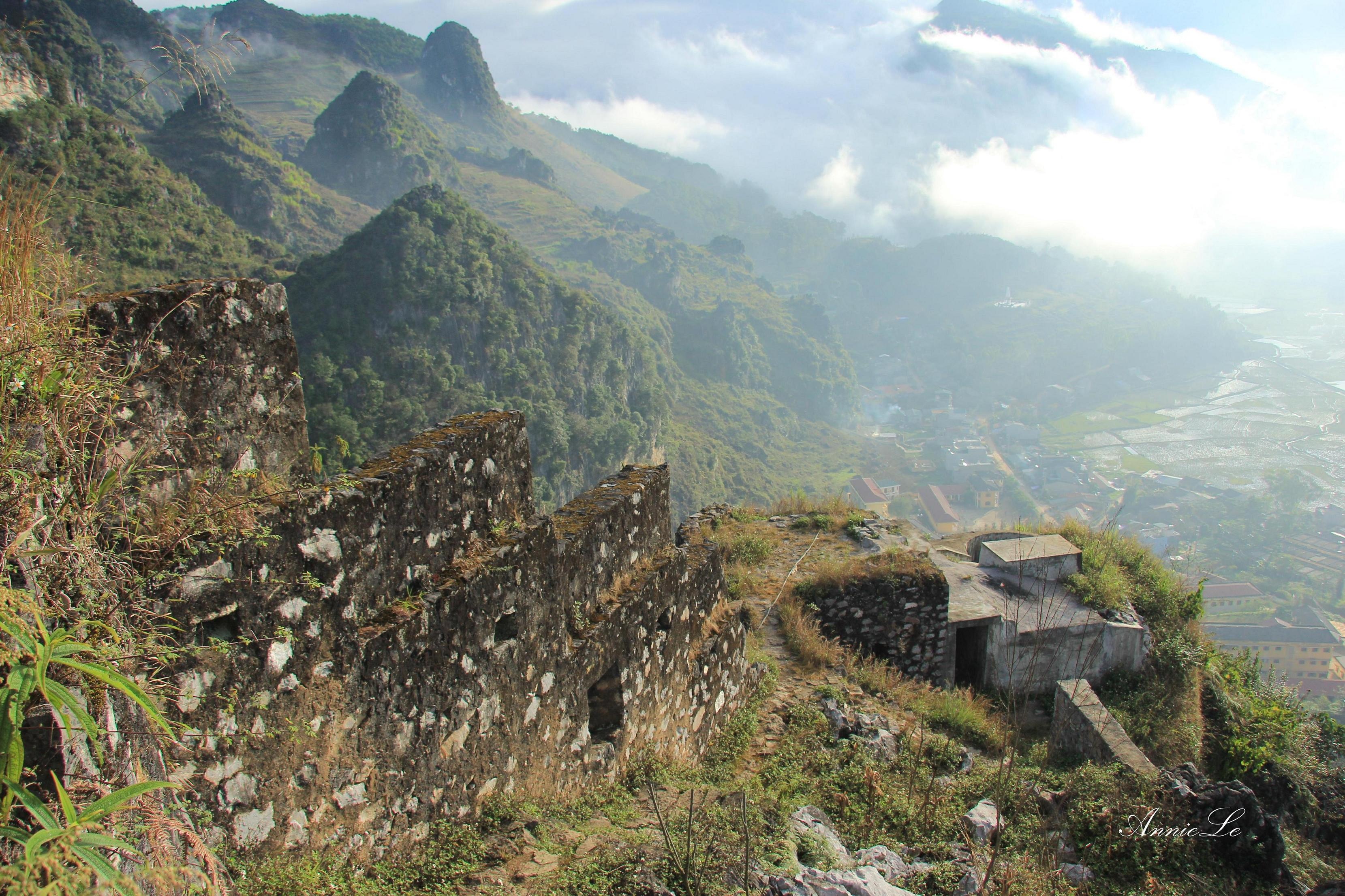 | Đồn Cao được xây dựng trên đỉnh núi cao 1.200 m so với mực nước biển. Đứng ở đây có thể bao quát hết toàn cảnh thị trấn Đồng Văn... |