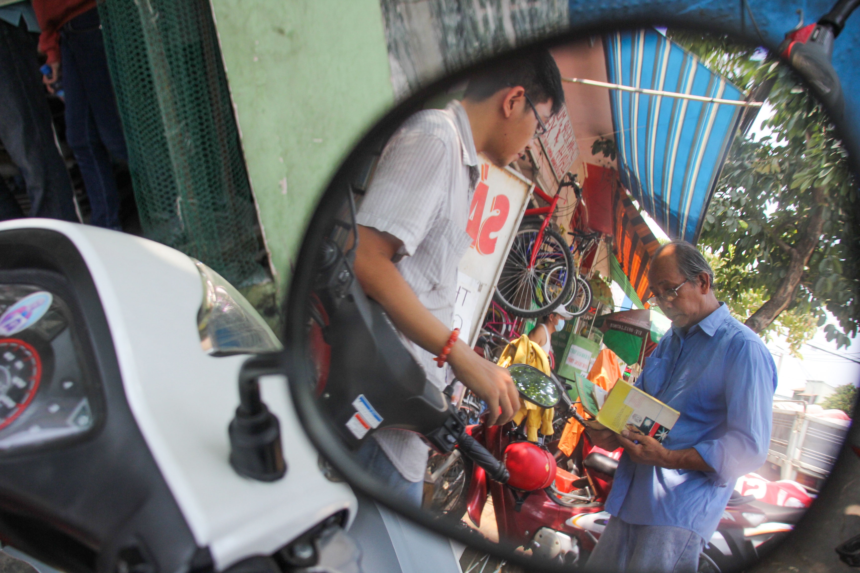 | Vì cửa hàng nhỏ có quá nhiều khách nên nhiều khi ông phải làm nhiệm vụ trông xe. Ông chủ hiệu sách cũ cho biết, mặt bằng thuê đã hết hạn nhưng được chủ cho gia hạn để có thể thanh lý được hết. Tuy nhiên, đến nay ông mới bán được hơn 1 nửa. "Tôi cũng chưa biết phải làm sao, giải pháp cuối là bán giấy vụn nhưng hy vọng sẽ sớm bán hết cho những người yêu sách", ông chia sẻ. |