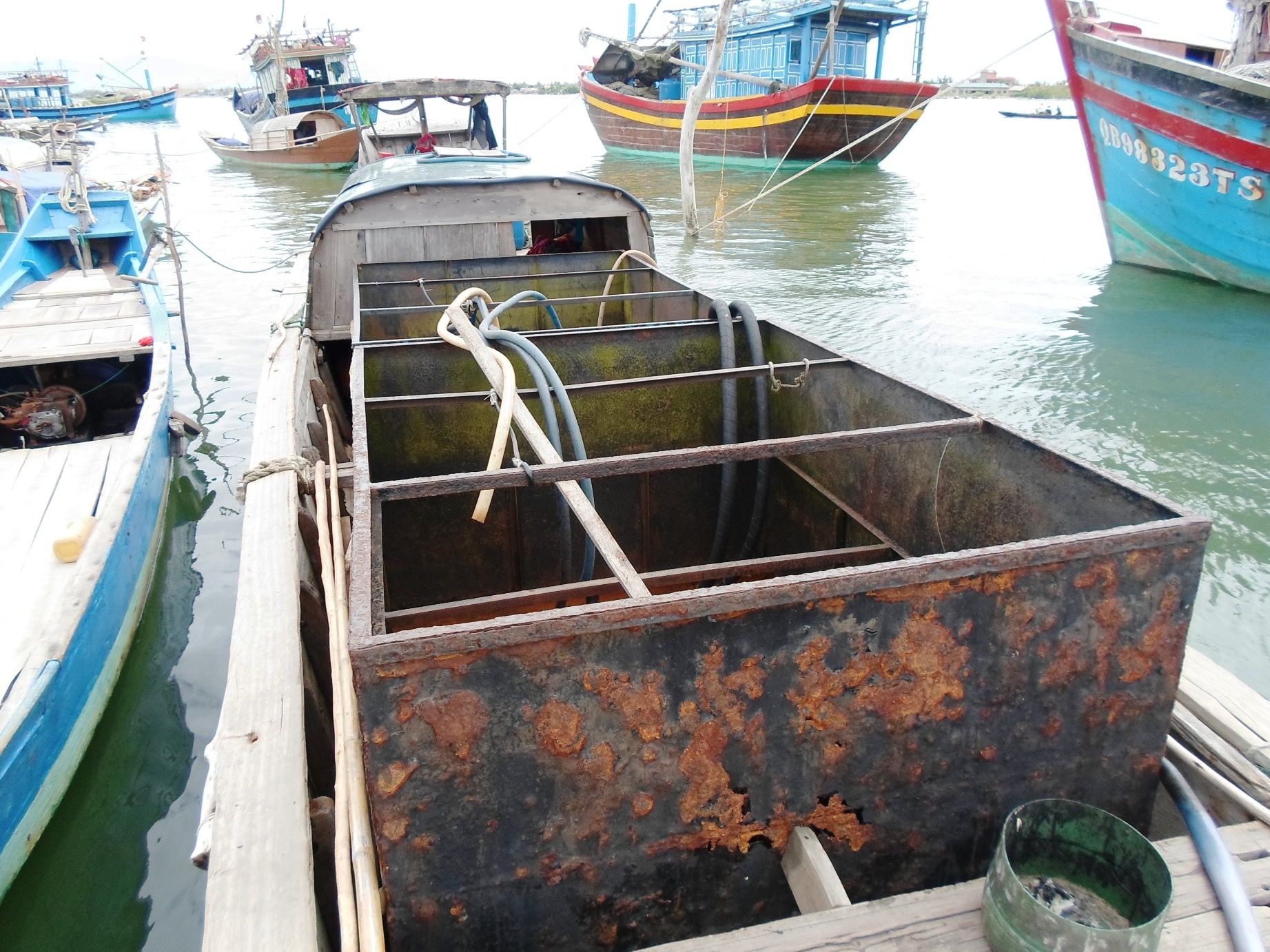 | Một chiếc thuyền được dùng để chở nước sạch nới khác về bán cho người dân xã Quảng Văn. |