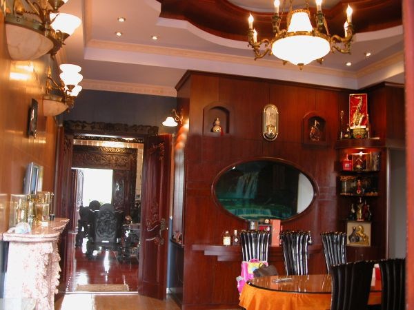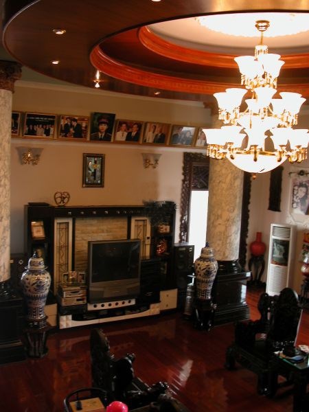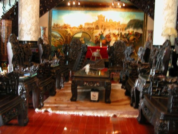 | Tại phòng khách là bộ bàn ghế đồng kị được làm bằng loại gỗ quý hiếm. |