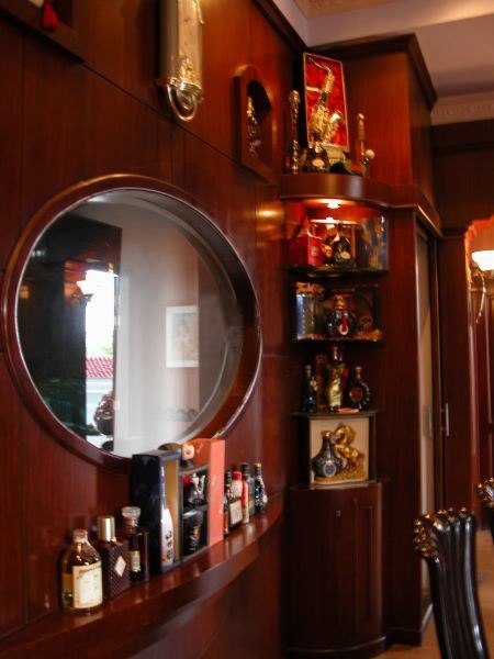 | Tủ tường bằng gỗ là nơi trưng bày các loại rượu quý. |