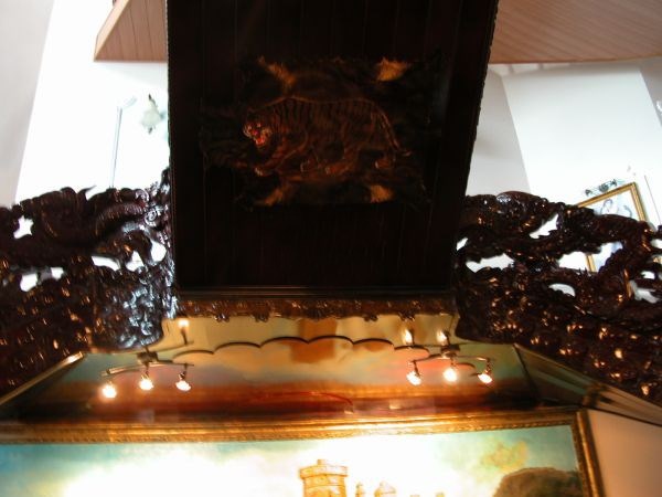 | Toàn bộ tay vịn cầu thang trong tòa lâu đài đều được làm bằng gỗ chạm khắc hình rồng. |