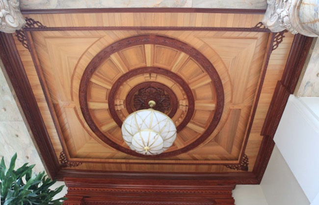 | Mái trần tại các phòng lớn dày hơn, hoa văn đan xen nhiều hơn so với trần hành lang. |