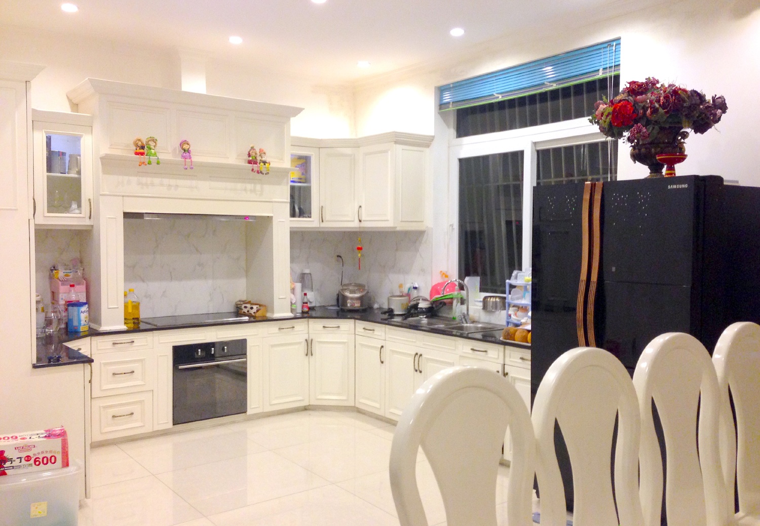 | Khu bếp cũng được vợ chồng Đăng Khôi chăm sóc chu đáo, tỉ mỉ với các thiết bị và đồ gia dụng cao cấp. Diện tích của phòng bếp rộng rãi không thua kém khu vực nào trong nhà bởi nó được nối liền với phòng ăn. |