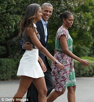 Ảnh chụp Tổng thống Obama, Đệ nhất phu nhân Michelle và con gái Malia ở đảo Martha's Vineyard trong kỳ nghỉ năm 2014. Ảnh: Getty |