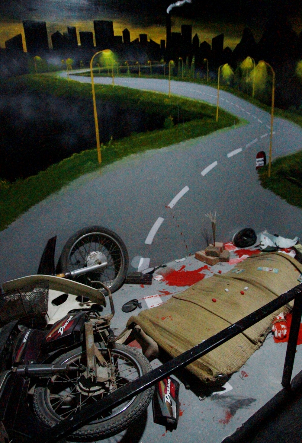 Mô phỏng một vụ tai nạn giao thông. Nạn nhân là người phụ nữ bị tai nạn và tử vong tại chỗ khi đang đi chơi cùng bạn trai.