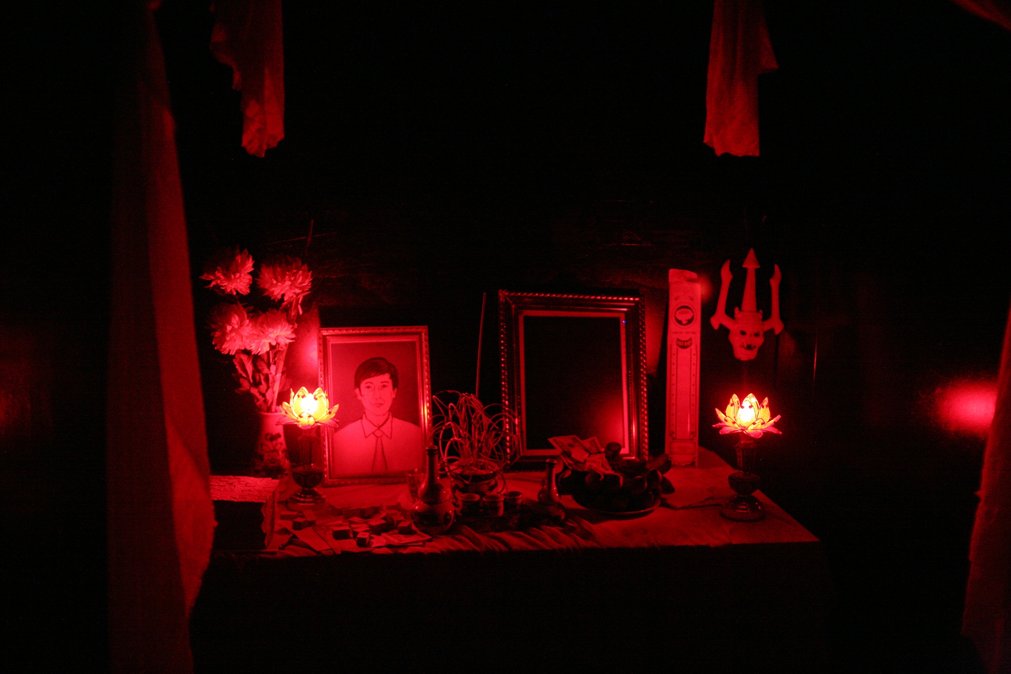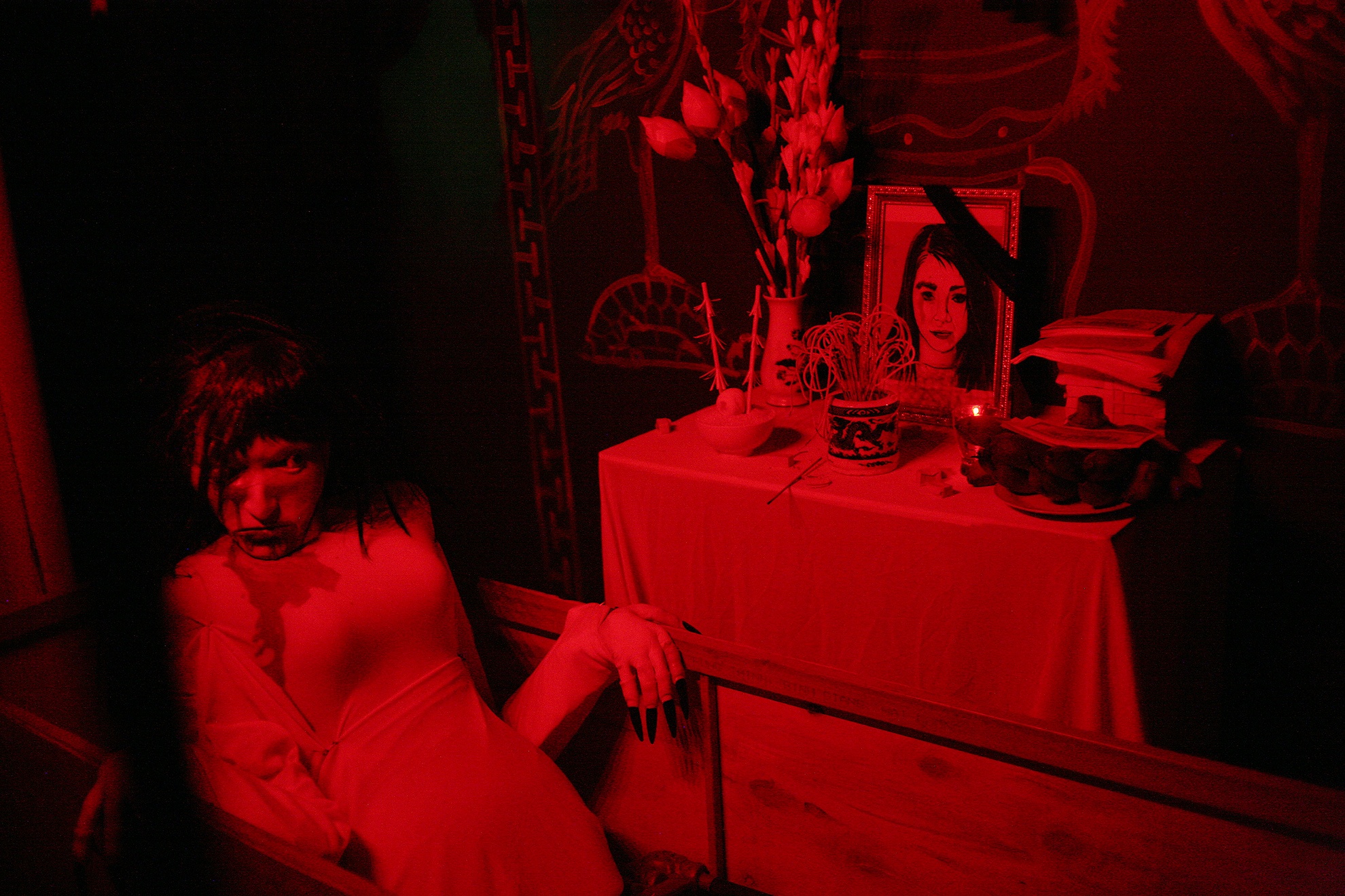 Hình ảnh bàn thờ y như thật hay xác chết bỗng đứng dậy khiến nhiều người thót tim.