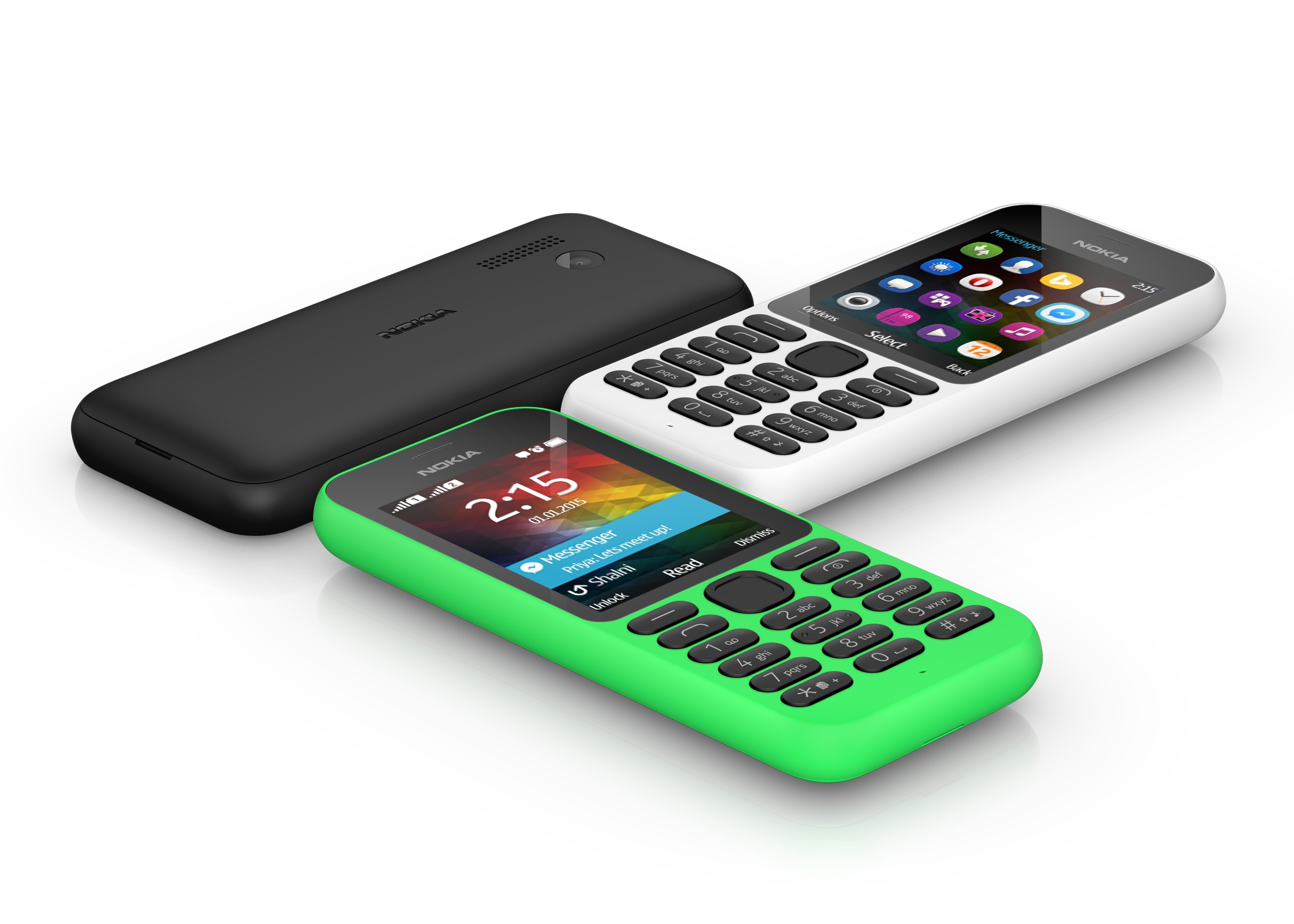 | 3 màu sắc của Nokia 215. Ảnh: Microsoft. |