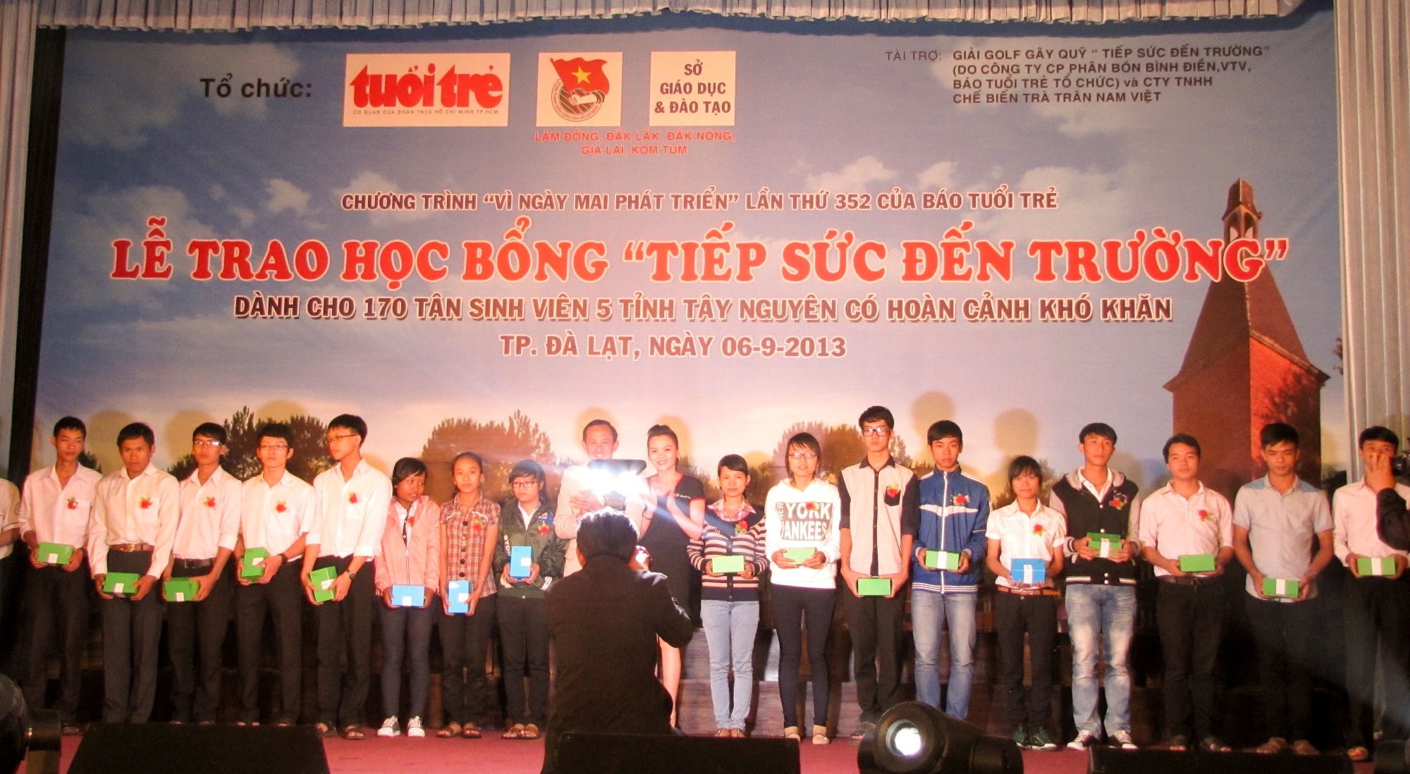 Đến tham dự lễ trao học bổng tiếp sức đến trường có lãnh đạo UBND tỉnh Lâm Đồng, Sở giáo dục đào tạo 5 tỉnh Tây Nguyên và tỉnh đoàn Lâm Đồng cùng 170 tân sinh viên ở các tỉnh: Đăk Lăk, Đăk Nông, Gia Lai, Kon Tum và Lâm Đồng. Đây là những bạn tân sinh viên đang bước vào ngưỡng cửa đại học và đều có một câu chuyện riêng về nghị lực vượt khó để vươn đến đỉnh cao của tri thức. Trong số 170 tân sinh viên có mặt tại buổi lễ đã có 20 em xuất sắc nhất được Nokia VN và FPT shop trao tặng điện thoại Nokia Asha 501.