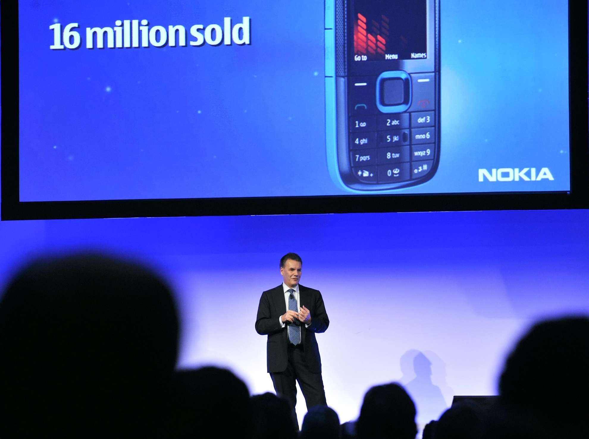 Đỉnh điểm của thời kỳ hoàng kim là năm 2008, khi Nokia dẫn đầu thị trường điện thoại toàn cầu, nắm giữ gần 40% thị phần. Với 129.746 nhân viên làm việc ở 120 quốc gia, hãng cung cấp sản phẩm cho 150 nước và thu về 41 tỷ euro, tương đương khoảng 55 tỷ USD trong năm 2009. Ảnh: Nokiamobileblog. |