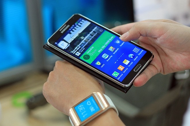 | Gear là thiết bị hiện chỉ kết nối với Note 3, máy sắp có bản nâng cấp để kết nối với S4 và Note II. |