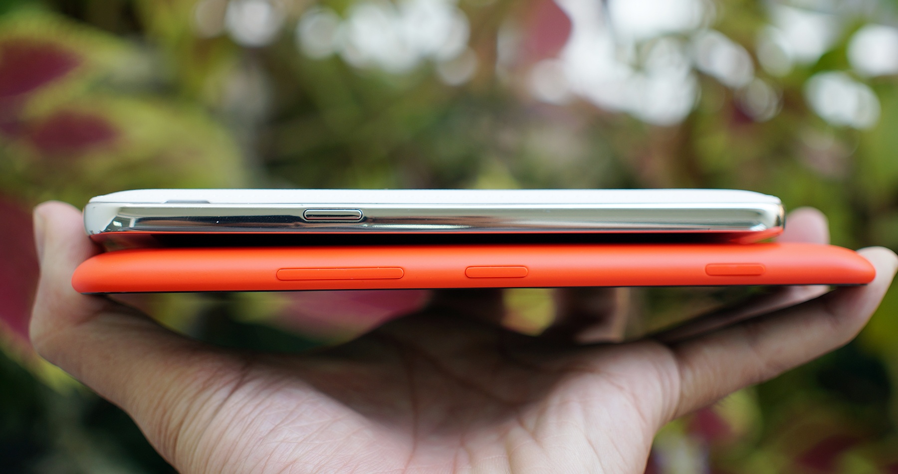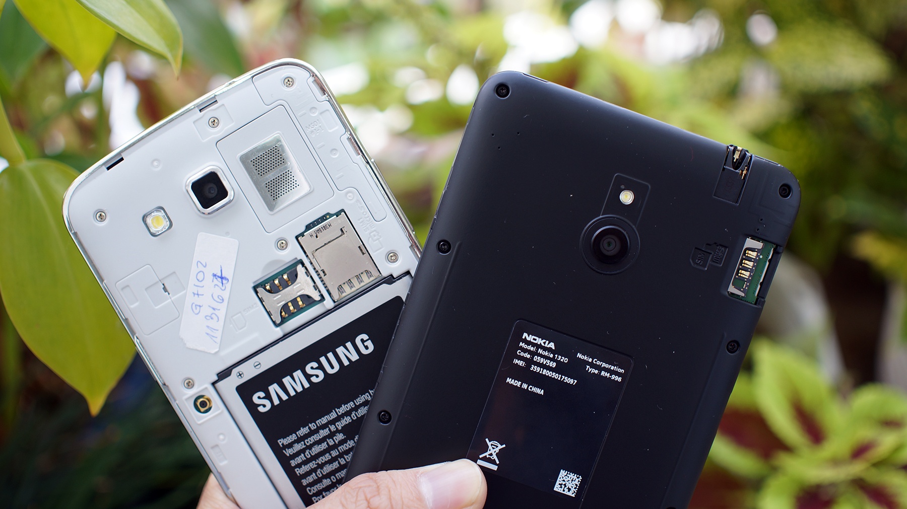 | Nắp lưng của Grand 2 khá mỏng manh và nhẹ. Trong khi đó, nắp lưng của Lumia 1320 khá to và cứng cáp. |