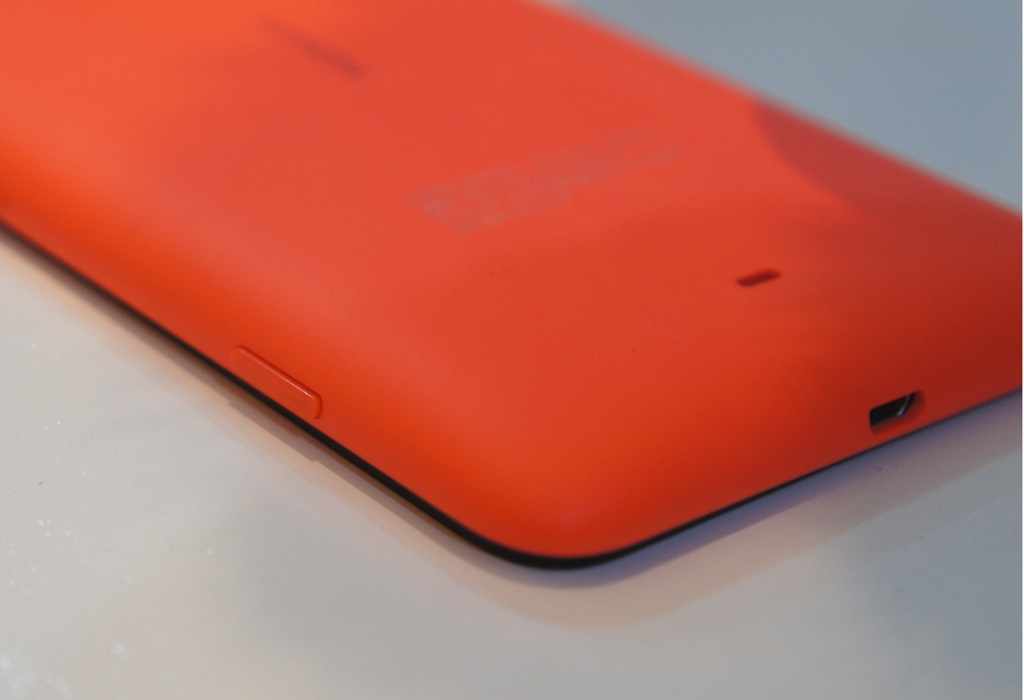 Các phím bấm tăng giảm âm lượng và phím nguồn có cùng tông màu cam với vỏ máy.