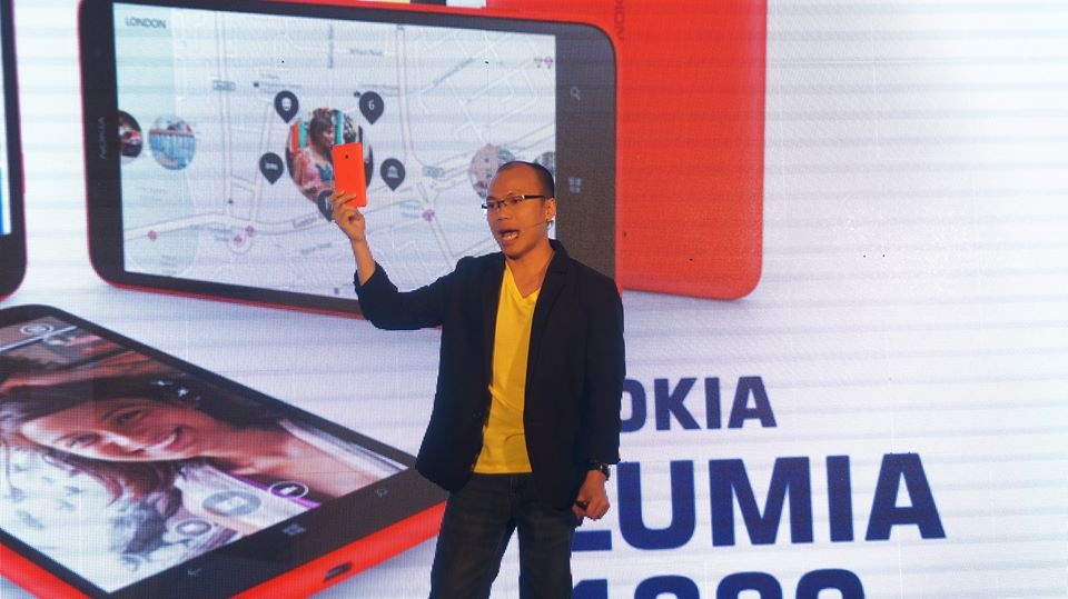 | Đại diện Nokia với chiếc Lumia 1320 trên tay trong buổi giới thiệu Lumia 1520 tại Hà Nội. |