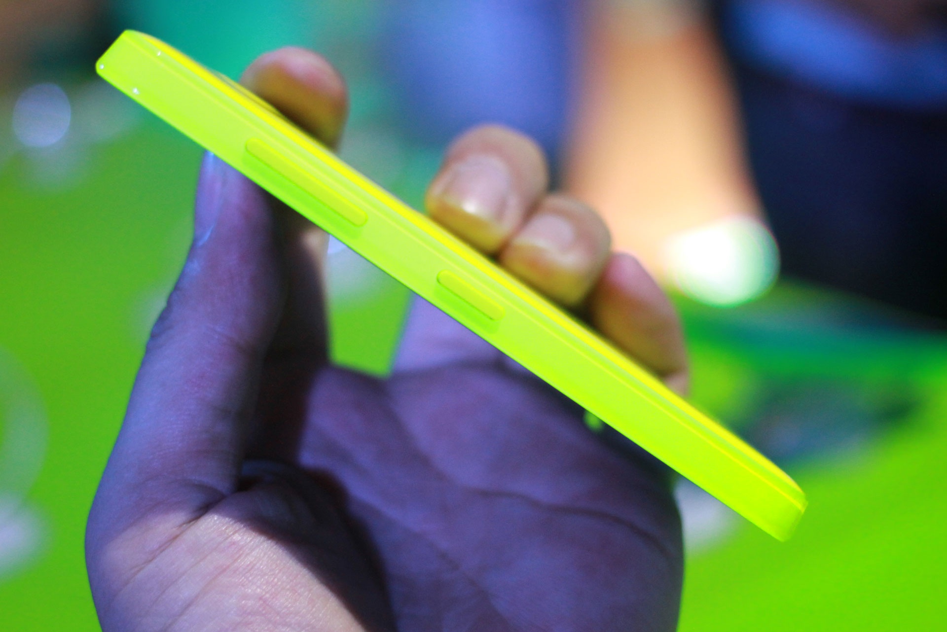 | Cạnh bên là nút nguồn và hai phím âm lượng. Dãy phím này trùng với màu vỏ. |