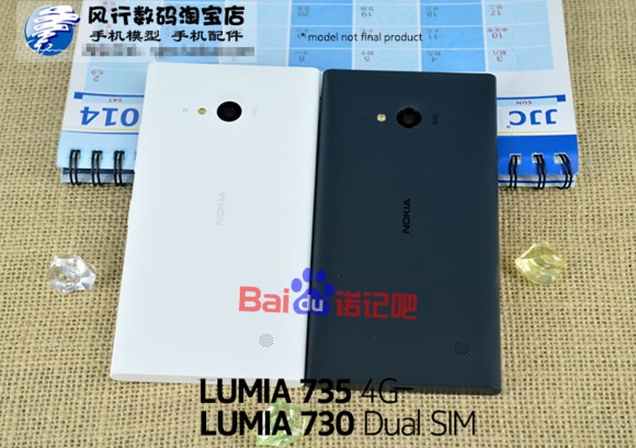 Theo thông tin từ trang này, Lumia 735 là một phiên bản khác của Lumia 730 có hỗ trợ mạng 4G LTE. Trong bức ảnh dưới đây, Lumia 735 là model màu trắng, bên cạnh là Lumia 730. Bỏ qua yếu tố màu sắc, thiết kế của cả hai khá tương đồng nhau.