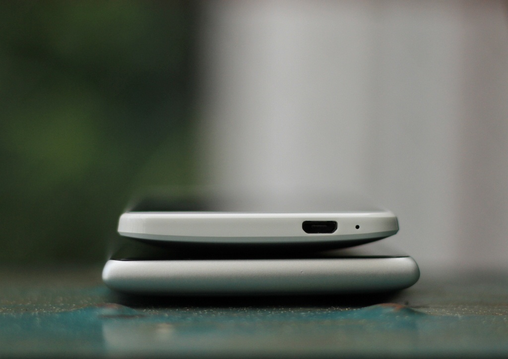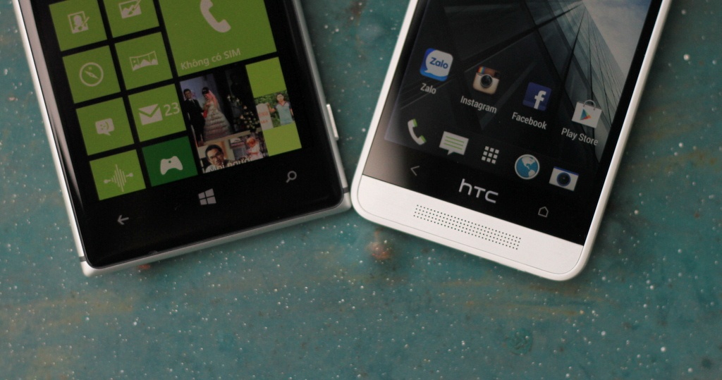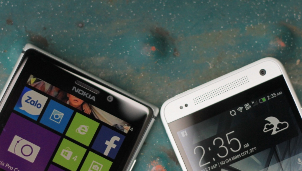 | Đây là những sản phẩm đại diện cho các nền tảng. Nếu như Lumia 925 chạy Windows Phone, và các phím bấm bên dưới theo cách truyền thống, thì One Mini sở hữu nút Back và Home. |