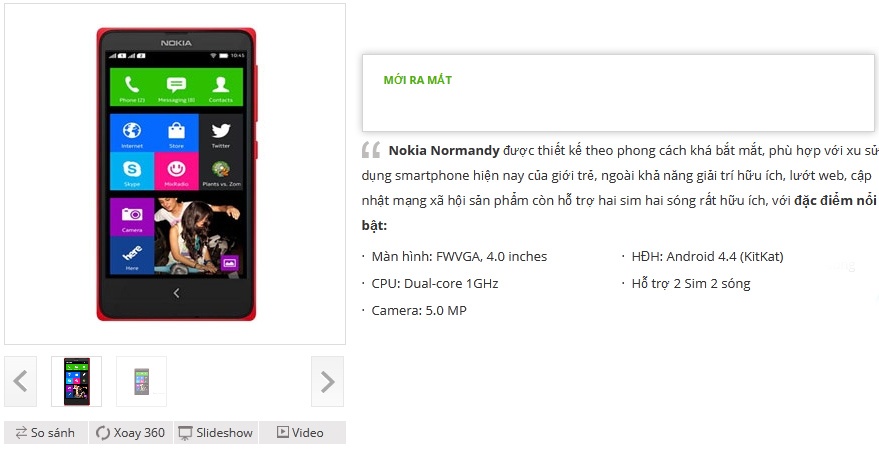 | Nokia Normandy xuất hiện trên một website bán lẻ tại Việt Nam. |