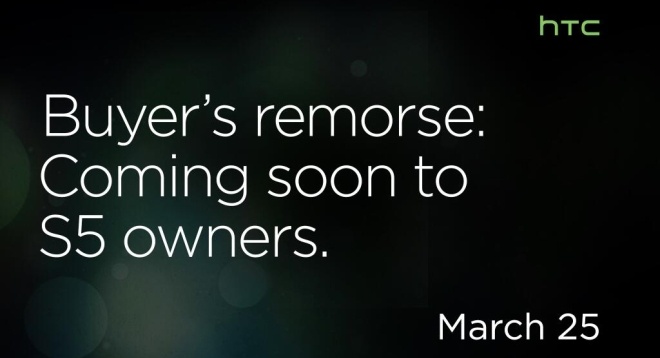 Trong khi đó, HTC lại chọn cách trêu đùa khác. Theo đó, hãng này thông báo nếu người dùng thất vọng khi phải chờ đợi S5, thì hãy đợi đến 25/3. Đây được xem là thời điểm HTC trình làng mẫu One tiếp theo.