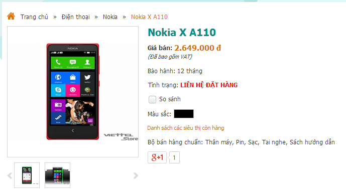Theo đó, Nokia X sẽ có giá 2.649.000 đồng bao gồm VAT. Người tiêu dùng trong nước đã có thể liên hệ đặt hàng sớm sản phẩm này.