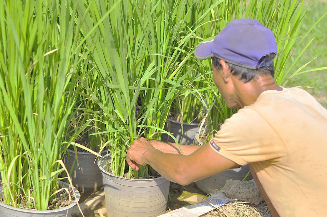 Theo anh Sơn, sau 2 tháng, 4 khóm lúa được trồng trong chậu sẽ trổ bông và chín vàng. Người trồng sẽ gắn nơ hồng lên bông, chuyển cây vào chậu sứ để bán. Nông dân này nói: "Mỗi chậu lúa cảnh tôi gieo 8 hạt, bán cho người chơi mỗi chậu trên 100.000 đồng. Hàng trăm chậu lúa trong vườn đều được người mua đặt hàng nên không lo ế". |