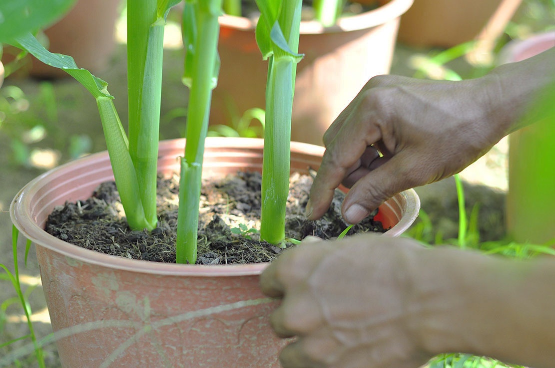 Còn mỗi chậu bắp cảnh được nông dân này trồng 3 cây tượng trưng cho sự vững chãi. |