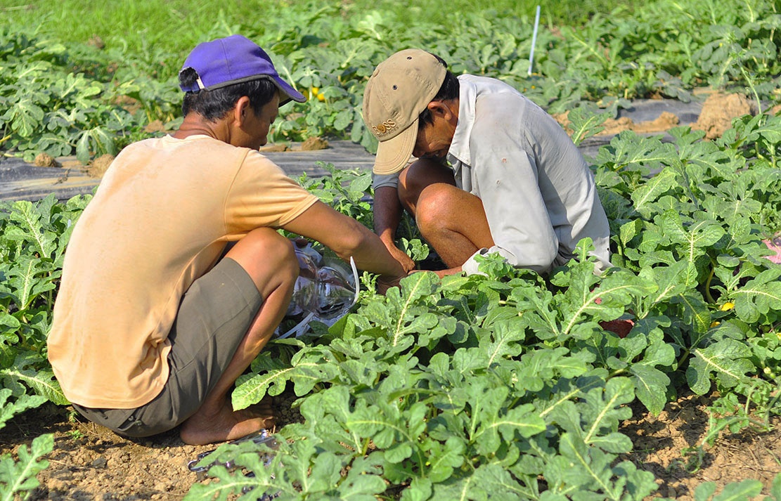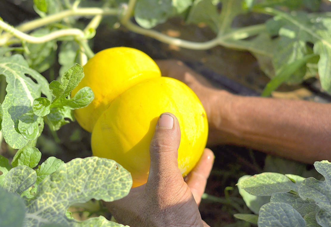 Cùng với việc trồng lúa, bắp phục vụ thị trường tết, nông dân Sơn còn trồng dưa vàng trên diện tích 1.000 m2. |