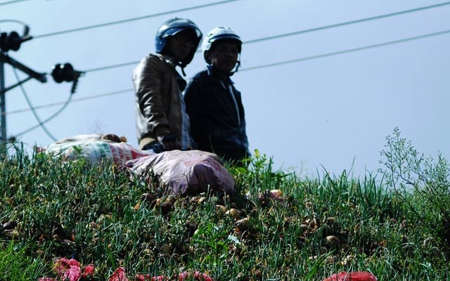| Hành tây bị đổ bỏ trên đường Thánh Mẫu (phường 7, TP. Đà Lạt). |