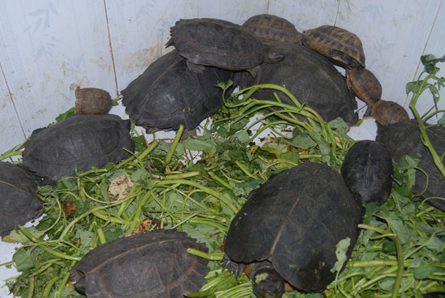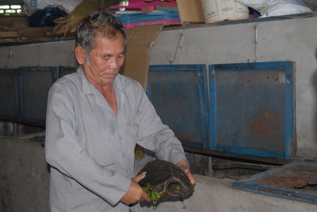 | Còn nông dân N.V.P ở Tri Tôn – An Giang không chỉ nuôi rùa mà còn mê sưu tầm các loại rùa. Hiện ông đã "gom" về vườn nuôi gần 100 con rùa các loại, trong đó có nhiều loại rùa quý hiếm nằm trong sách đỏ. |