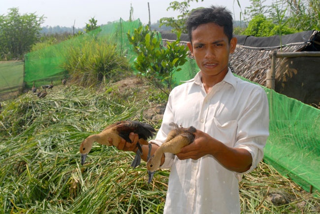 | Nông dân người Chăm Sa Lê ở xã Vĩnh Hanh, huyện Châu Thành, An Giang lại hứng thú với việc nhân giống, nuôi hàng trăm con le le. Hiện anh đang sở hữu đàn le le 400 con. Chim le le nuôi 1 năm đạt trọng lượng bình quân 300 gram, giá bán một 1kg hiện 250.000 – 300.000 đồng. Sau khi trừ chi phí , mỗi năm anh Sa thu lãi 150 triệu đồng. |