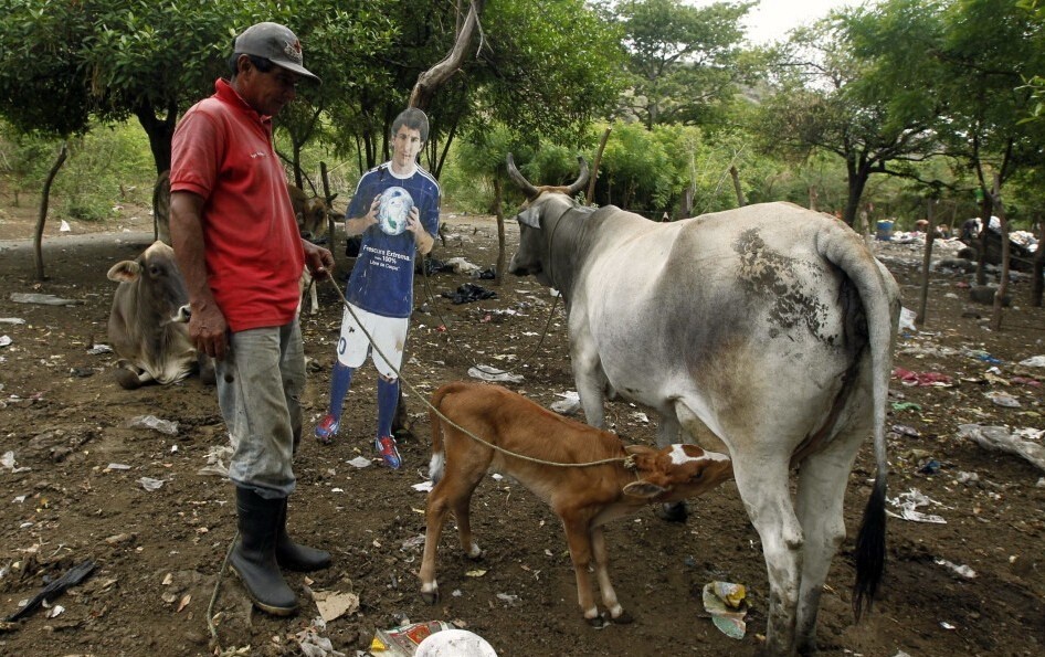 | Ngoài ra, tấm hình nộm của Messi còn có một tác dụng khác là đánh lừa thị giác của kẻ trộm, giúp nông dân trông giữ đàn bò. |