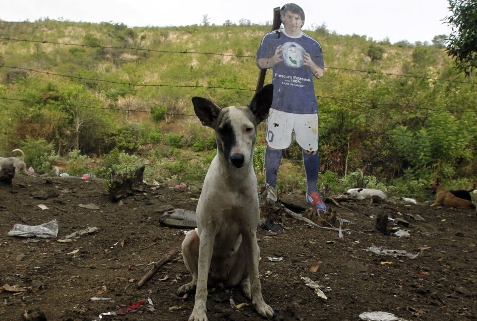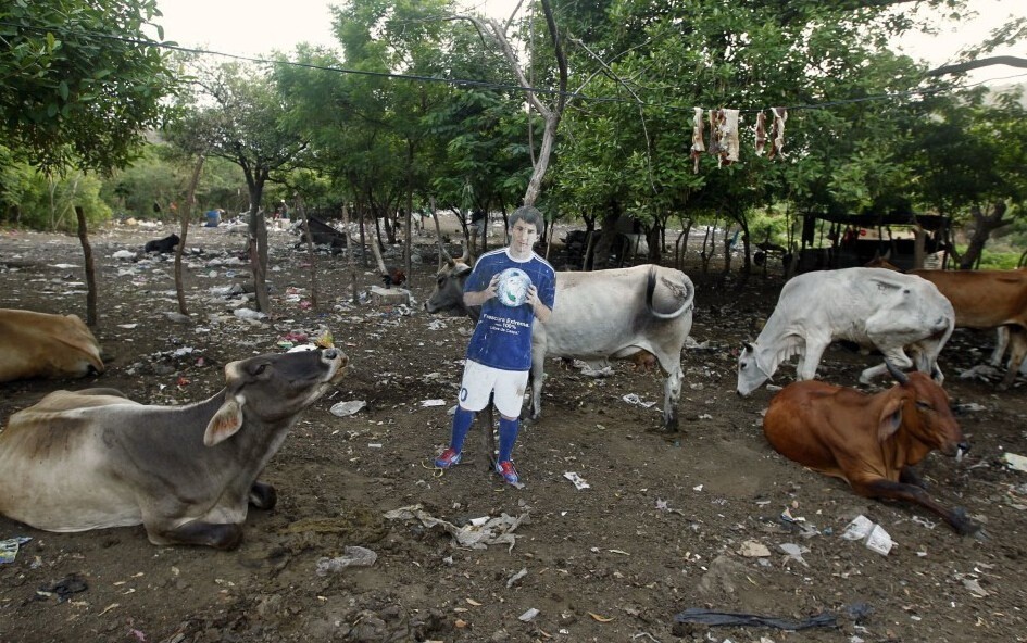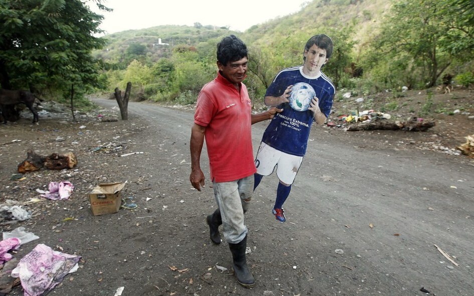 Tại một trang trại ở Managua, Nicaragua, một người nông dân chăn bò đã làm một tấm hình nộm của Messi bằng bìa lớn để ở cạnh gốc cây. Đây là cách mà người đàn ông nghèo thể hiện tình yêu với ngôi sao người Argentina. Dù không được tới Brazil xem World Cup nhưng anh vẫn luôn có cảm giác Messi đang ở bên cạnh mình. |