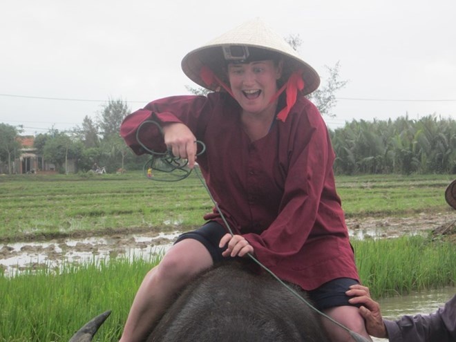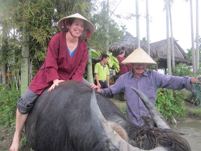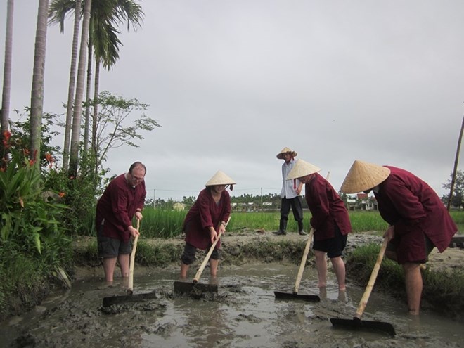 Chị Danielle, du khách đến từ Mỹ, cho biết: "Tôi rất vui, rất thích khoá học làm nông này. Bên nước tôi cũng có nghề nông, nhưng công việc bên đó chỉ dựa vào chủ yếu là cơ khí, công cụ. Tại đây, chúng tôi được trải nghiệm thực thụ với đôi tay, đôi chân. Được bước chân xuống ruộng, tự tay mình cày, cấy, gieo mạ… Tôi rất vui. Cũng qua đây, tôi đã hiểu được quá trình cực khổ, vất vả của người nông dân Việt Nam để làm ra được hạt lúa, hạt gạo”.