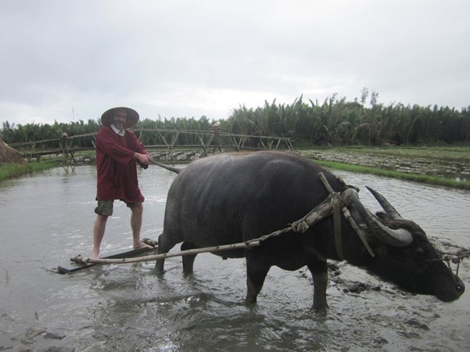 | Dắt trâu ra đồng, cày bừa như một nông dân thực thụ. |
