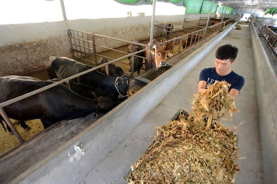 | Những con bò trong trang trại của Li Yuan có chế độ nuôi nhốt rất lạ đời. |