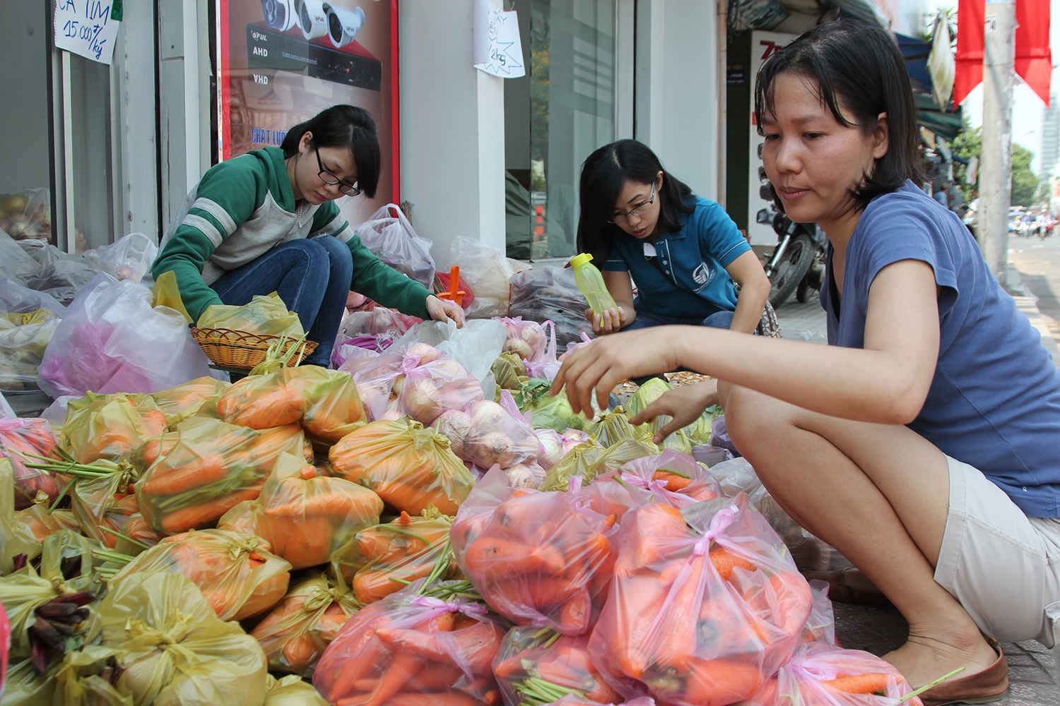 Ngoài bán lẻ, điểm bán của chị còn cung ứng cho nhà hàng, quán ăn đặt hàng qua mạng. Giá các loại rau quả được nhóm chị Thúy nhập tại vườn cao hơn 2-3 lần so với thương lái mua tại chỗ. Giá bán đến khách hàng TP HCM được các điểm thiện nguyện thống nhất với mức 7.500 đồng/kg với hành tây, củ dền; cà rốt, khoai tây 15.000 đồng/kg.